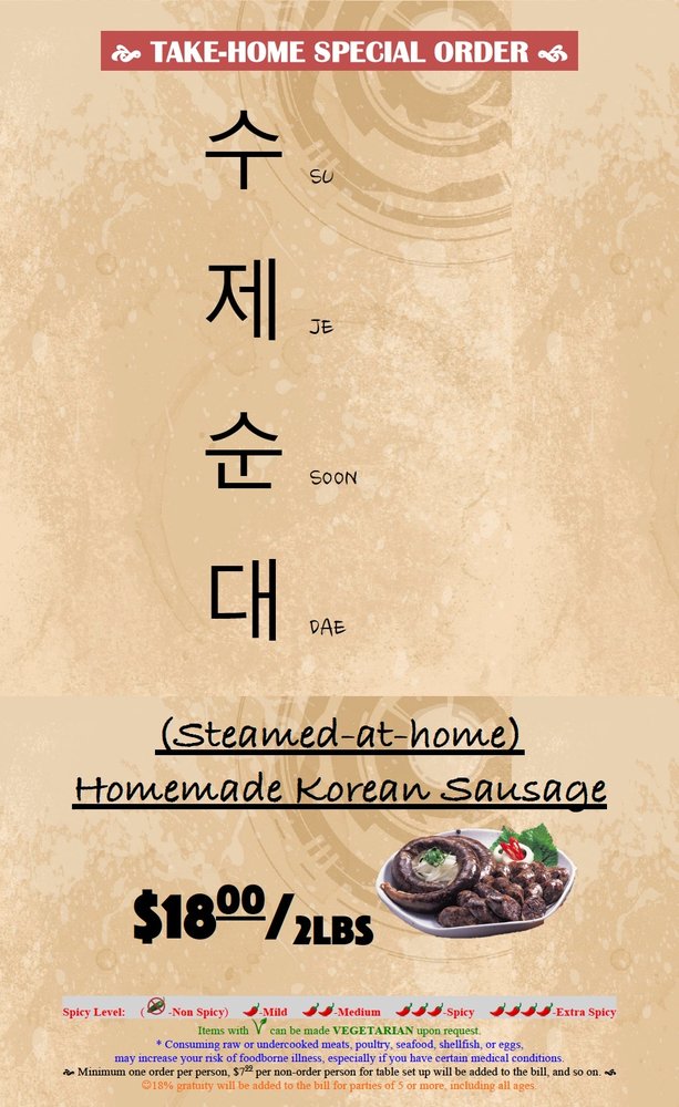 Enjoy our flavorful Korean sausage at home! Sold by the pound, this dish is perfect for steaming at your convenience. Instructions: Steam on medium heat for - minutes until fully heated through.
